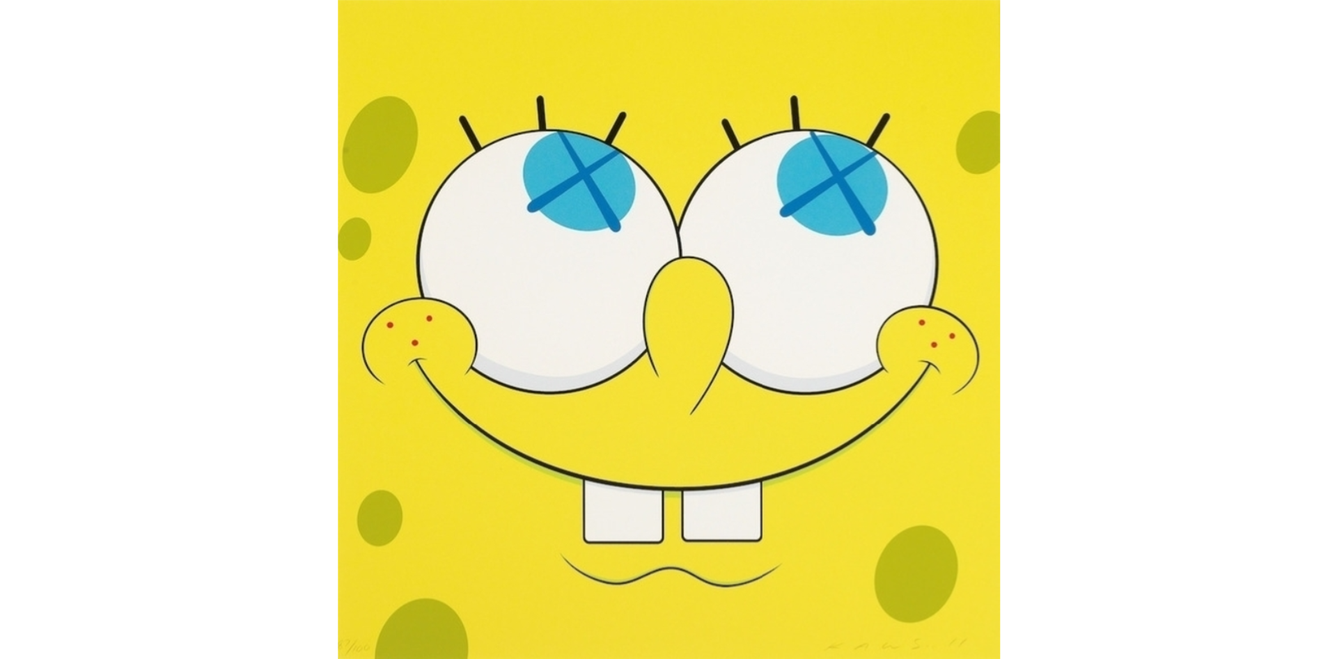 Design: SpongeBob’s iconic face reimagined with KAWS' signature aesthetic, including crossed-out eyes